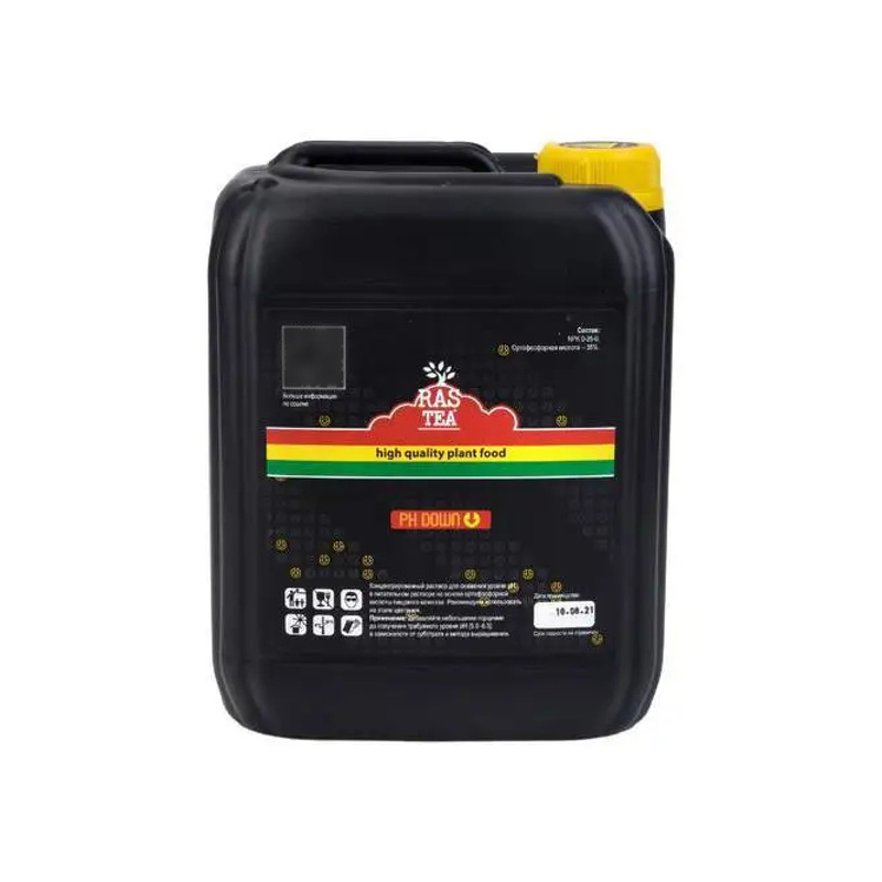 Концентрированный раствор для снижения уровня pH в питательном растворе. Изготовлен из ортофосфорной кислоты пищевого качества. Не содержит тяжелых металлов, вредных примесей безопасен для растений в адекватных количествах. Ортофосфорная кислота используется для приготовления буферных растворов поэтому мы рекомендуем использовать ее для приготовления питательных растворов на очищенной воде (осмотическая фильтрация или дистиллят) Высокая концентрация делает препарат удобным для приготовления больших объёмов питательного раствора.